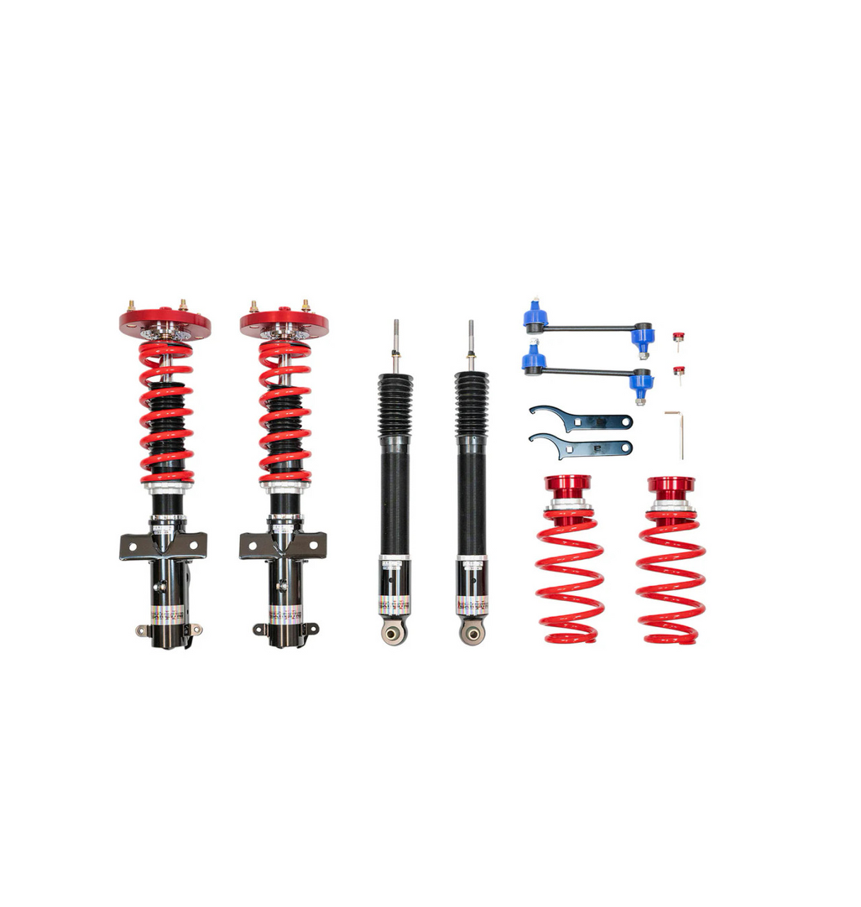 This Pedders coilover kit is designed for 2005-2014 Mustang V6, GT, Bullitt, BOSS 302, or Shelby GT500.